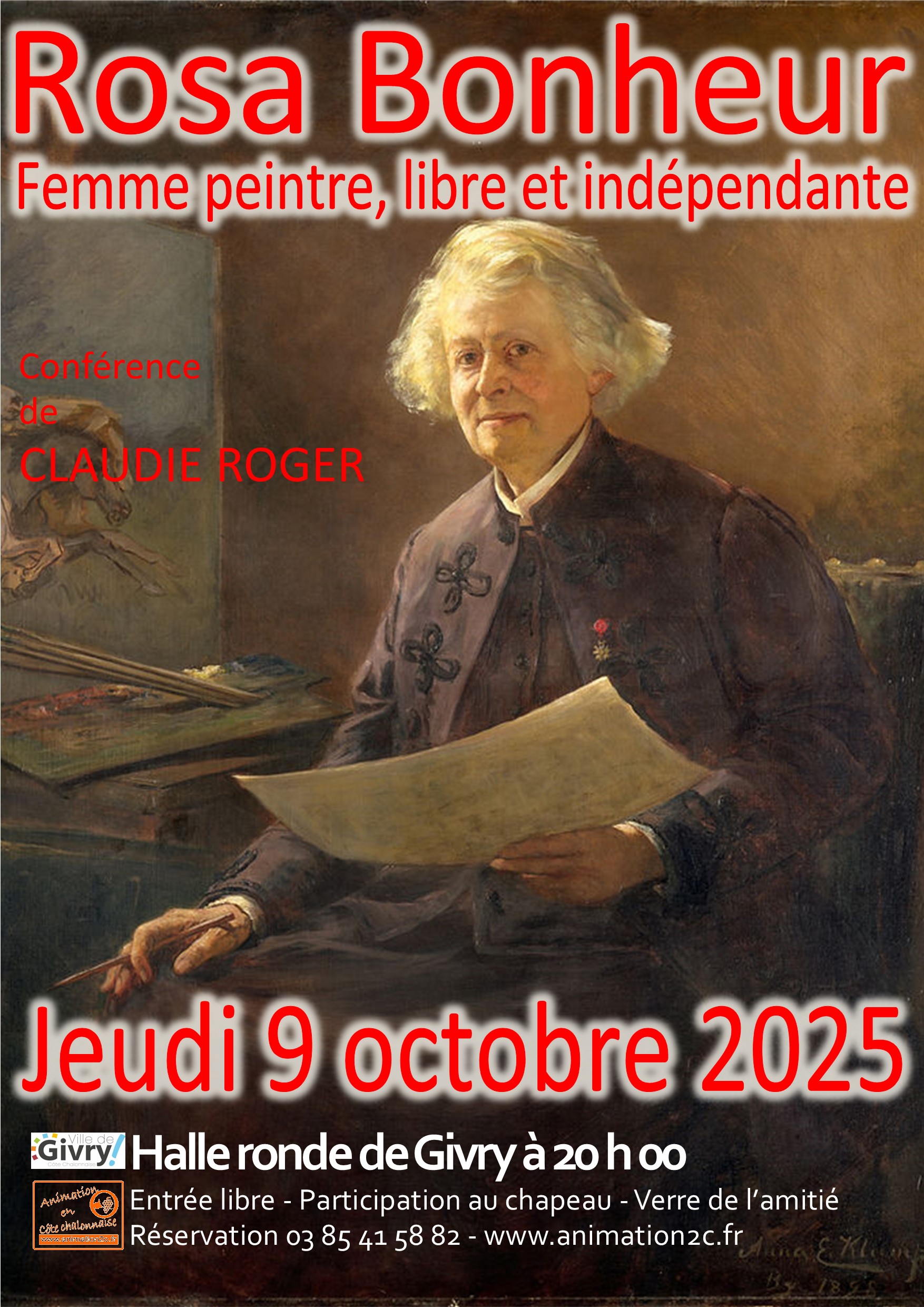 Jeudi 9 octobre 2025 - Givry - Conférence Rosa Bonheur, femme-peintre libre et indépendante Halle ronde - 20 h 00 - Entrée au chapeau